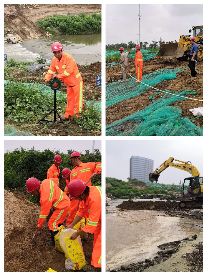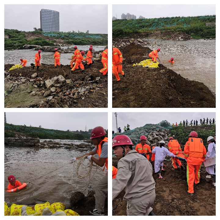 搶險救援組趕赴現場對圍堰缺口進行機械圍堵、沙袋防護、水泵抽水等搶險行動,模擬搶險過程中,有一工人不慎落水,醫療救援組對該落水工人進行了緊急救援,并送至醫院救治。各小組協同作戰,使防汛搶險任務順利完成,讓工程受災損失降到最低。